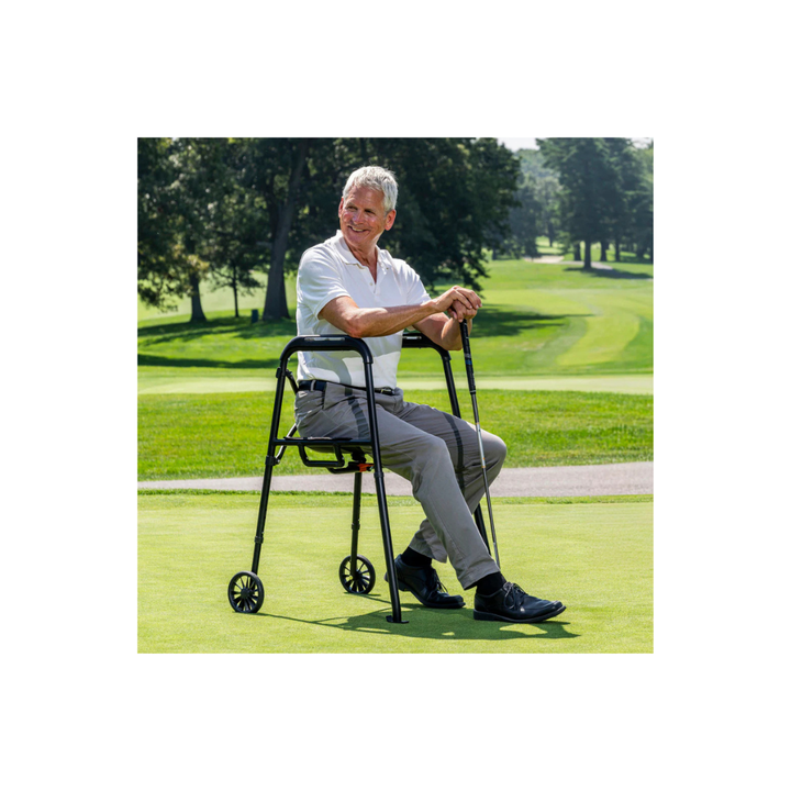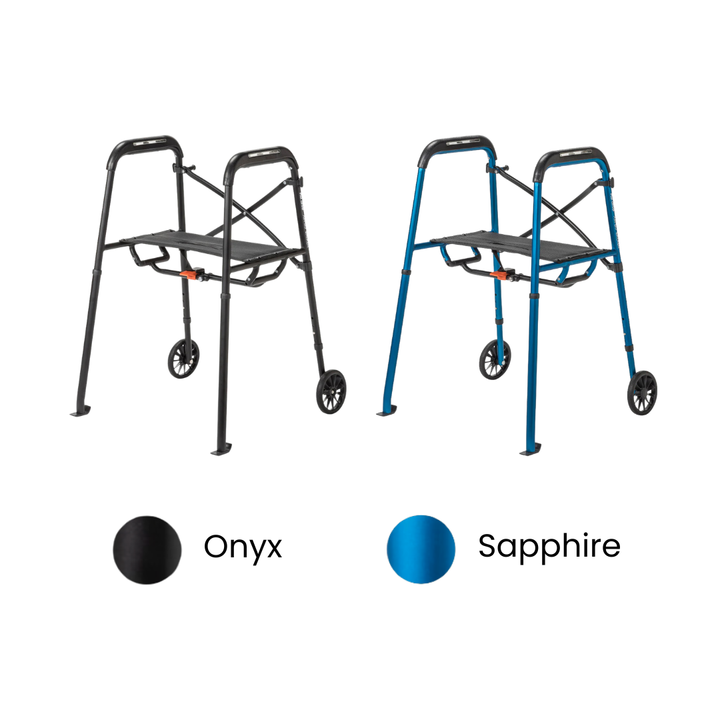 Equipped with large treaded wheels and rear ski glides, the Air Go Walker ensures smooth, controlled movement across a variety of surfaces. The convenient folding mechanism makes it easy to store and transport, and with no assembly required, it’s ready to use right out of the box.