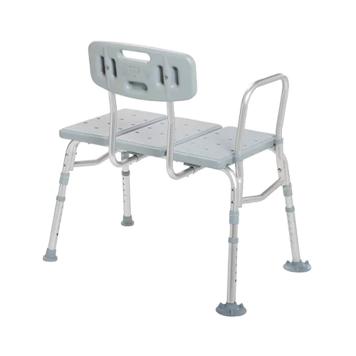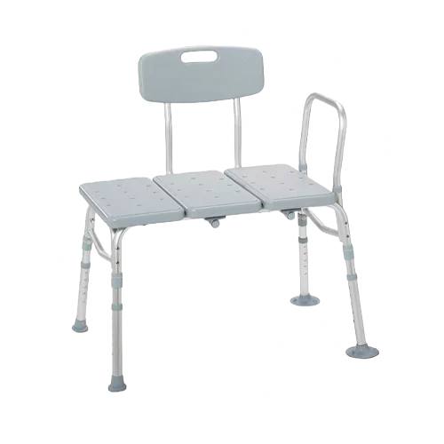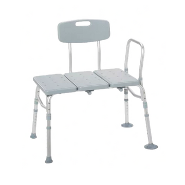 A-frame construction provides stability with a durable plastic bench and backrest. Height adjusts in ½" increments with unique dual column extension legs. Reversible to accommodate any bathroom. Pinch-free lever allows for push pins to be depressed without pinching fingers. Made using recycled materials.